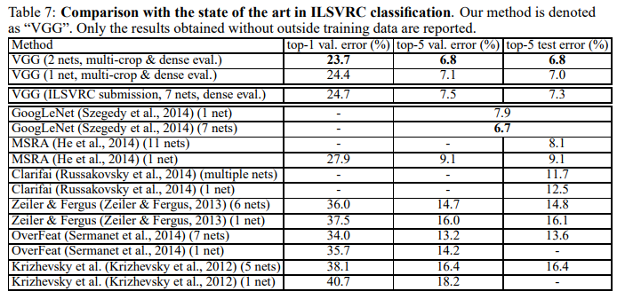 + VGG (7 nets) = ensemble of 7 models different models trained using configurations C, D, E.